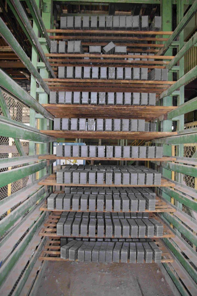 Испытания образцов, обожженных в трех температурных режимах (950 °С, 1000 °С и 1050 °С), показали соответственно следующие результаты: огневая усадка, %-0,2; 1,2; 2,4; общая усадка, % -3,6; 4,6; 5,8; предел прочности при сжатии, МПа-9,6; 17,6; 22,1; предел прочности при изгибе, МПа-2,2; 7,3; 7,8; водопоглощение, %-11,4; 8,9; 7,1; средняя плотность, кг/м3 -1992; 2077; 2169. На образцах — кубиках и балочках — незначительные формовочные трещины, цвет образцов розовый, звук звонкий, излом плотный, дефекты сушки сохраняются и после обжига, в некоторых балочках наблюдается легкое коробление, МРЗ-15.