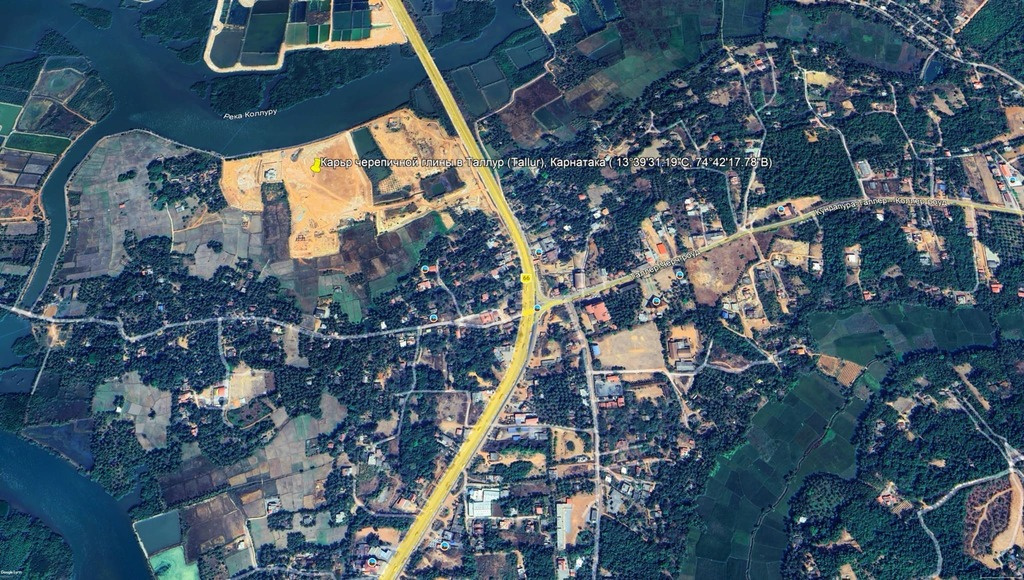 Место расположения карьера черепичной глины Таллур (Tallur), Карнатака