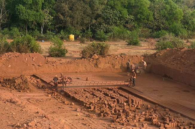 Карьер черепичной глины в районе Таллур (Tallur), Карнатака. Такие карьеры характерны для всего побережья Карнатаки и Кералы. Источник: https://commons.wikimedia.org/wiki/File%3ALaterite_quarry_in_Gokarna%2C_Karnataka.jpg?utm_source=chatgpt.com